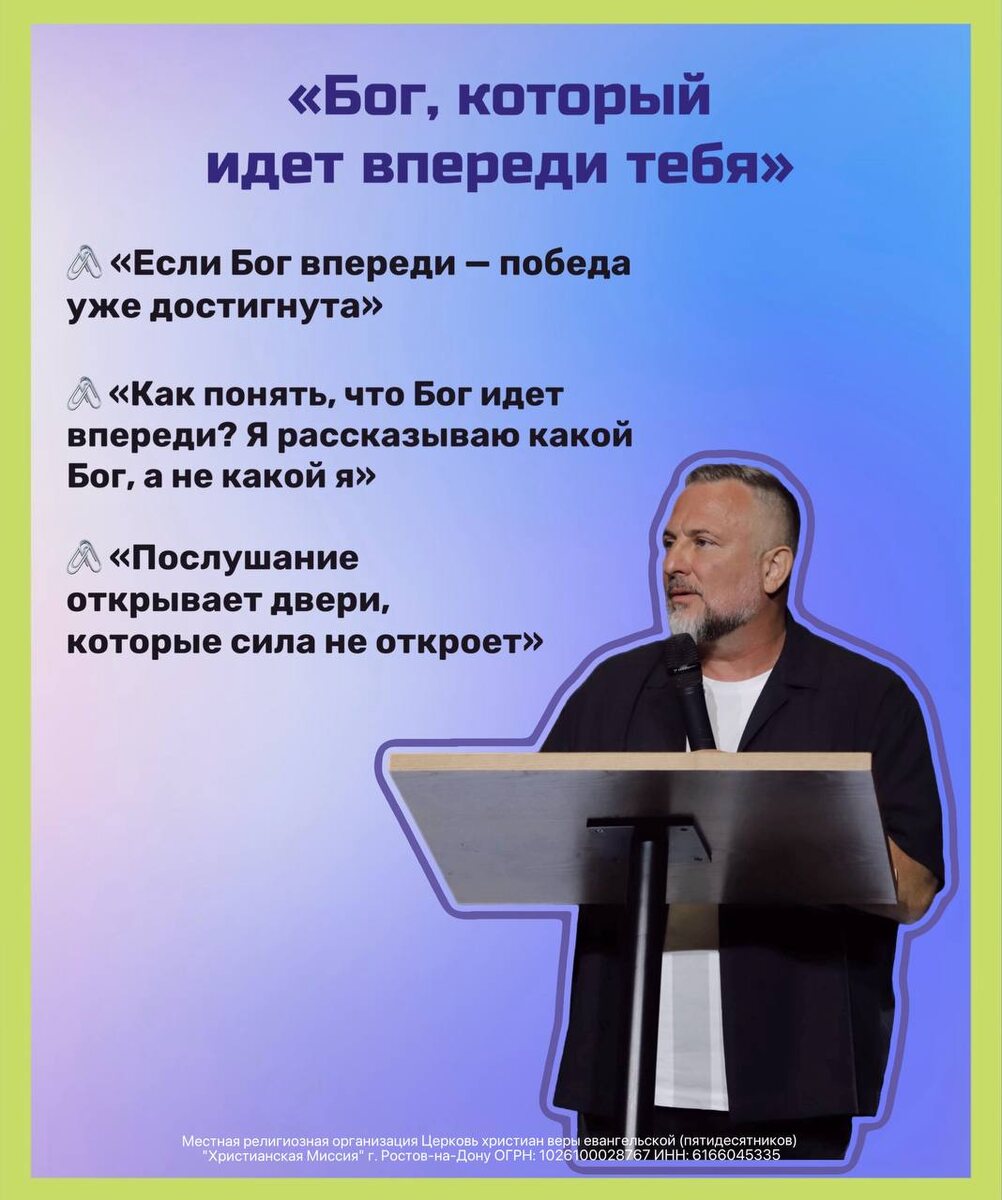 В это воскресенье в нашей церкви было особенное богослужение ⛪️💫 Епископ говорил о том, как определить, что Бог идёт впереди нас. Что даже когда нам кажется, будто впереди неизвестность — Он уже там, идет впереди тебя, готовит дорогу, чтобы ты мог войти в новое без страха. Мы собрали для вас несколько мыслей, которые особенно откликнулись: 🔴«Бог не оставляет нас на перепутье — Он идёт первым, расчищая тебе дорогу.» 🔴«Послушание — это не ограничение, а защита.» 🔴«Иногда кажется, что Бог медлит, но Он просто готовит место, куда тебе предстоит войти.» 🔴«Мы часто хотим, чтобы Бог шёл за нами и благословлял наш выбор, но настоящий путь начинается, когда мы позволяем Ему идти впереди.» 🔴«Вера — это не отсутствие страха, а шаг навстречу туда, где уже побывал Бог.» Когда Бог идёт впереди, будьте уверены в том, что дорога для вас уже приготовлена. Оставляйте реакции на этот пост, если хотите, чтобы мы делали такие выжимки из воскресного слова ❤️