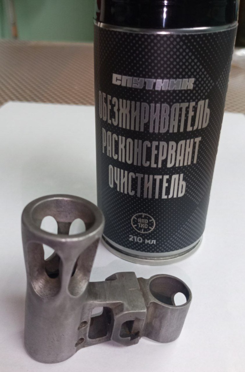 В ответ на пост Итак, по данной детали. После подготовки поверхности обязательно нужно хорошо её обезжирить и только после этого приступать к процессу оксидирования. Если будет возможность прогревать деталь, то процесс пойдёт быстрее. Всего было нанесено 5 слоёв и при этом только два раза потребовалось промывать деталь от выступившего налёта. Напомним, что в данном случае необходимо снова высушить и обезжирить поверхность, прежде чем продолжать работу. Перед вами промежуточный результат после нанесения 3-х слоёв и конечный результат после нанесения 5 слоёв и обработки нейтральным маслом. Нейтральное масло остановит реакцию и создаст защитную плёнку. Для закрепления результата желательно оставить покрытую маслом деталь на несколько часов, после чего вытереть, а затем провести смазку повторно. Наблюдая уже полученный результат на отдельно взятой детали, будем склонять владельца "Тигра" к проведению оксидирования. Тем более, что такое покрытие на оружии с деревянными частями будет смотре