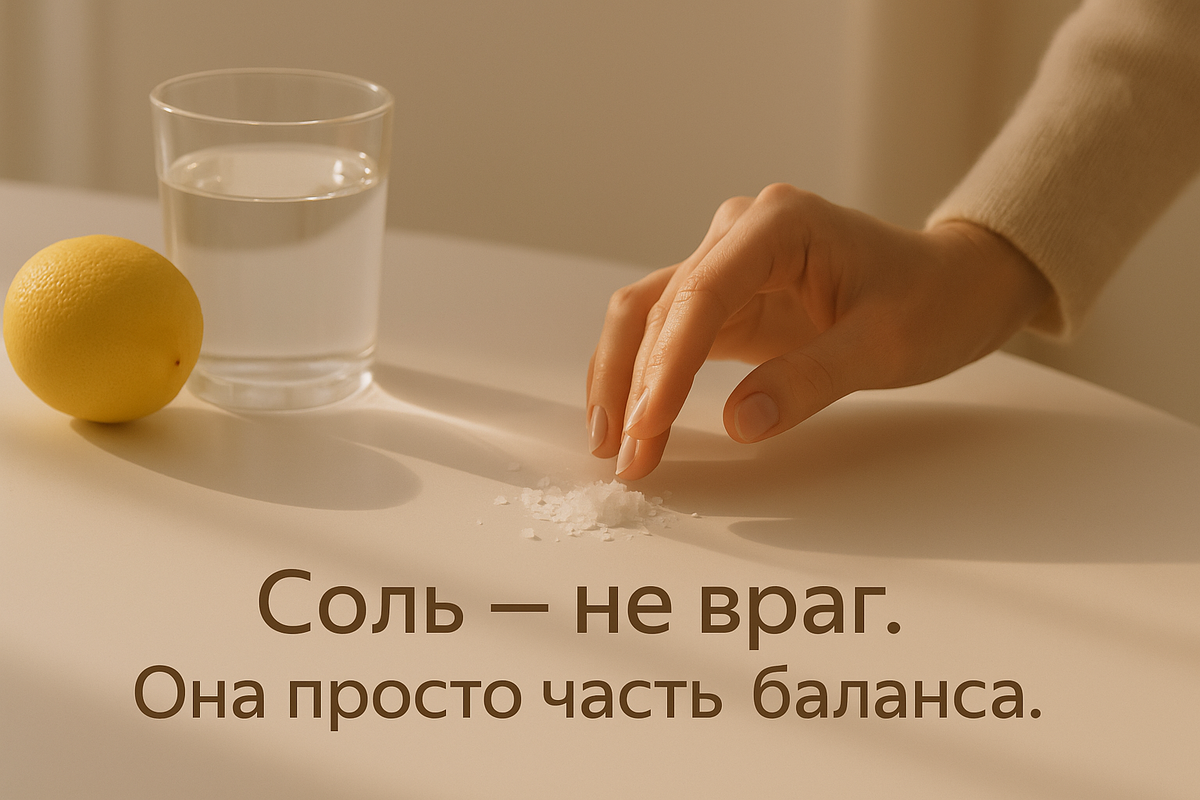 И сразу — чувство вины, желание всё ограничить, «чиститься», пить меньше воды. Но на самом деле соль не враг.