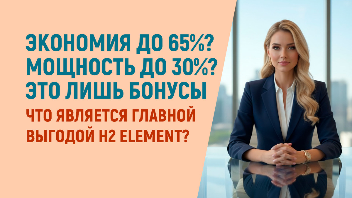 Но это — не цель, а следствие. Главное, что вы получаете — это надёжный, «здоровый» двигатель, готовый к любым нагрузкам.Да, система H2 Element улучшает и другие параметры:до 60% снижение расхода топлива (в зависимости от типа двигателя и режима);