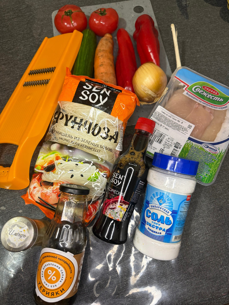 Фунчоза с курицей и овощами: сытный ужин без лишних калорий #слилией