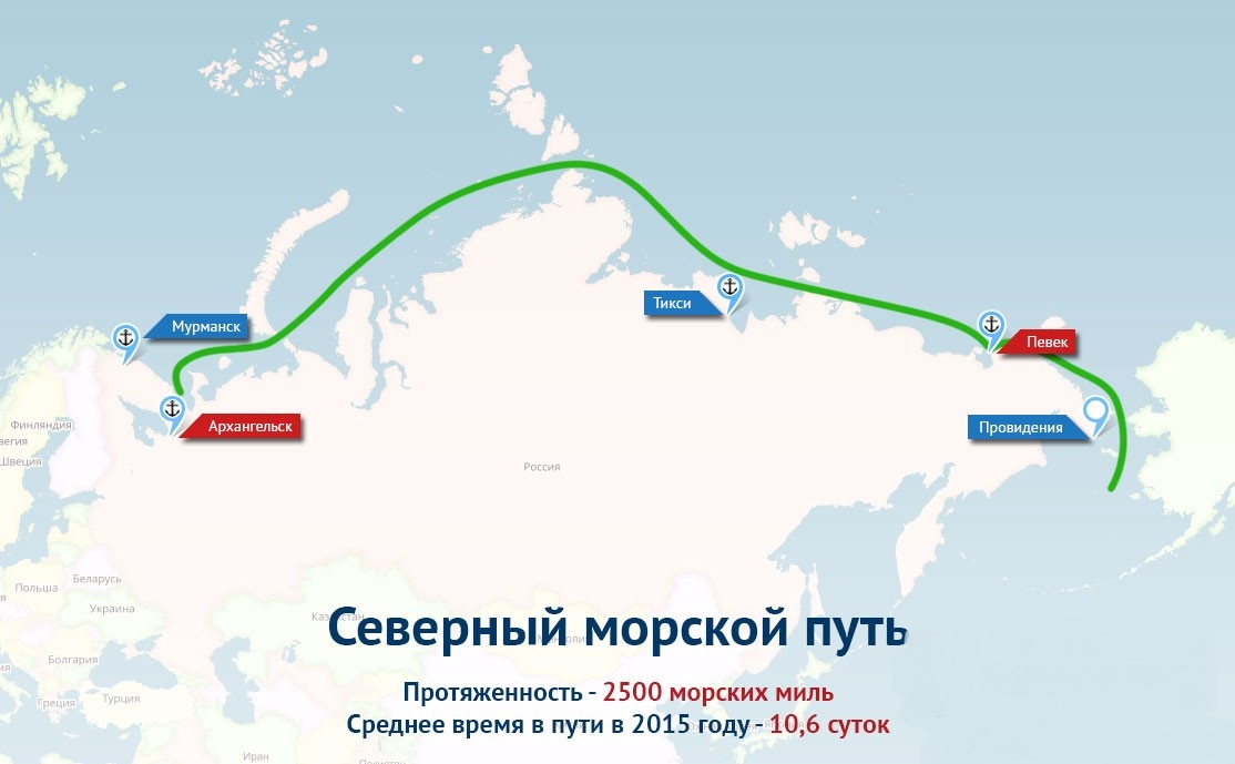 Северный морской путь (СМП) — кратчайший морской путь между европейской частью России и регионом Дальнего Востока. Это «исторически сложившаяся национальная единая транспортная коммуникация России в Арктике», которую активно используют крупные российские добывающие компании («Норникель», «Газпром», «Лукойл» и другие). По ней идёт так называемый Северный завоз для жителей Крайнего Севера.
