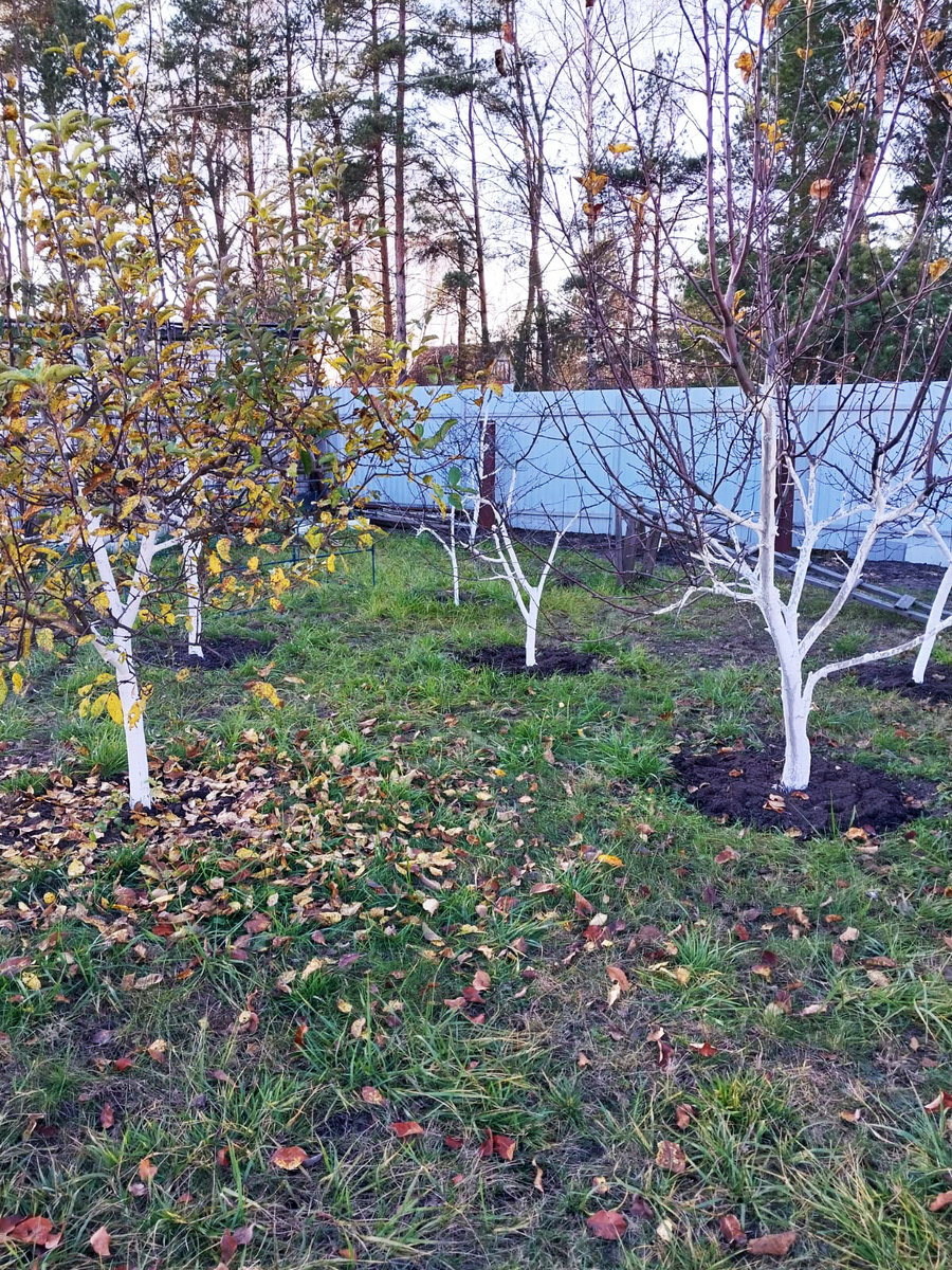 Побелка придает саду аккуратный эстетичный вид, подчёркивая ухоженность участка и заботу садовода о растениях.