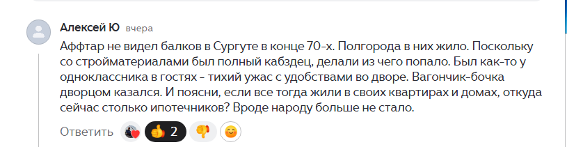 Этот вообще какой- то бестолковый, я бы сказал, стандартный, ибо комментатор не читал, не понял, однако высказался. Я же как раз в статье Сургут упомянул, ибо в этом городе до недавнего проживали наши родственники.