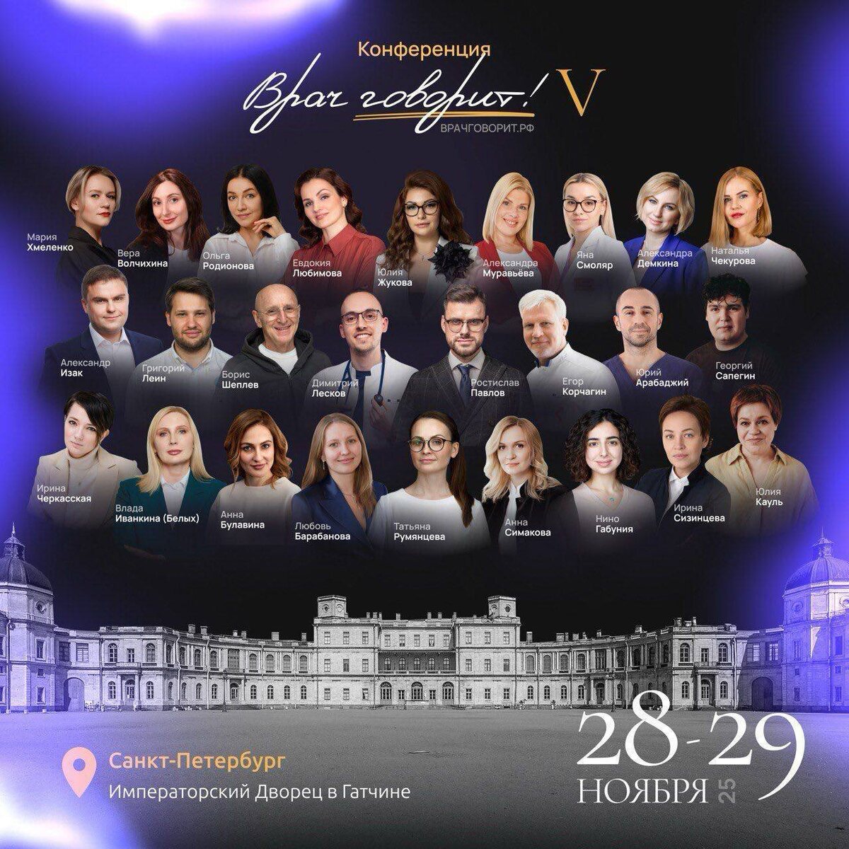 ⭐️ ВРАЧ ГОВОРИТ! V: ЛИДЕРСТВО В ЭПОХУ ПЕРЕМЕН! 📅 28–29 ноября 2025 📍 Большой Гатчинский Императорский дворец, Санкт-Петербург Историческое событие, которое изменит ваше представление о медицинском лидерстве и управлении, возвращается! ⸻ «Врач говорит!» — это не просто конференция. Это интеллектуальный салон современного здравоохранения, где собираются лидеры, практики, и визионеры, чтобы говорить о будущем медицины, человеческом факторе, цифровых вызовах и искусстве быть врачом — сегодня. ⸻ 💬 ЧТО ВАС ЖДЕТ: 🗓️ 28 ноября: Лидерство и Управление • Стратегическое Управление: Узнайте, как превратить столкновение поколений в энергию команды и как работает коллективное управление (не "Я", а "Мы"). • Цифровизация и Сервис: Время цифровых историй в сервисе для пациентов и внедрение системы качества без стресса для команды. • Вечер во Дворце: Погрузитесь в историю с иммерсивной экскурсией по Гатчинскому дворцу, завершите день праздничным ужином «Блюда императорской кухни» с винным дег