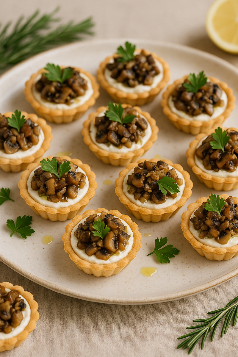 Ни один новогодний стол не обходится без эффектных, быстрых и вкусных закусок. И если вы ищете идею, которая одновременно простая, красивая и гарантированно понравится гостям, тарталетки с творожным сыром и грибами — идеальный вариант. Я готовлю их каждый Новый год, и они стабильно в топе любимых блюд. Ниже делюсь всем, что знаю: точные ингредиенты, нюансы приготовления, секреты подачи и маленькие хитрости, которые делают блюдо по-настоящему праздничным. Почему именно эти тарталетки — удачный выбор для Нового года Готовятся за 15–20 минут даже у новичков. Продукты простые, доступные, но вкус получается ресторанным. Закуска универсальная: подходит и для фуршета, и для классического застолья. Легко готовить заранее — экономит время в праздничной суете. Ингредиенты (точные количества) На 12 тарталеток среднего размера: Тарталетки песочные — 12 штук Шампиньоны — 250 г Лук репчатый — 1 небольшая головка Творожный сыр (классический) — 200 г Сливочное масло — 20 г (для обжарки) Чеснок — 1