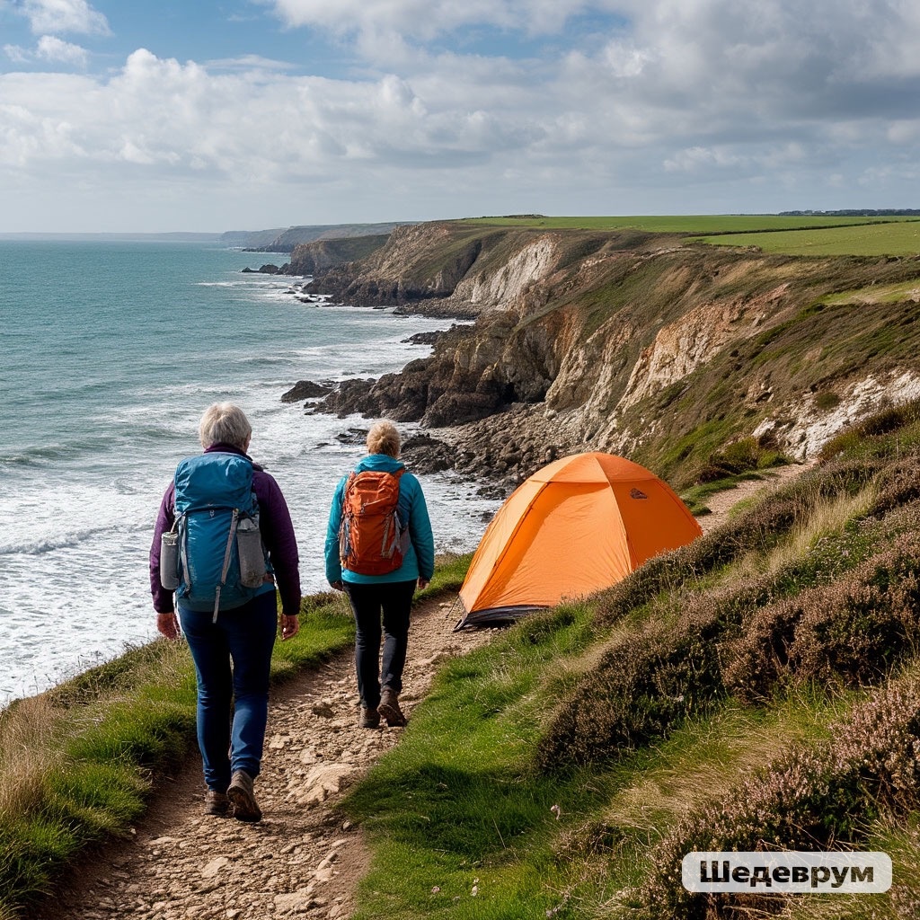 В отчаянии, не зная, куда идти, они принимают, казалось бы, безумное решение: отправиться в пеший поход по Юго-Западной прибрежной тропе Англии. Есть такие тропы по всему миру, они разной степени сложности. Для пары 50+ это был не самый простой маршрут. С палаткой за плечами и крохами сбережений в кармане они выходят на тропу, огибающую скалистый, суровый берег.