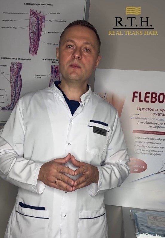 Расскажем, как всего за 15 минут вернуть ногам здоровье и красоту без боли, разрезов и наркоза. Варикозная болезнь — это не просто косметический дефект, а серьезное заболевание, снижающее качество жизни. Долгое время радикальное лечение было связано с болезненными операциями, рисками наркоза и длительным восстановлением. Но сегодня у нас есть настоящая революция — FLEBOGRIF. Что это за технология и как она работает расскажет флеболог известной клиники Real Trans Hair Revival Алексей Белоглазов. Что такое FLEBOGRIF? “Flebogrif — это инновационная методика, которая позволяет избавиться от варикозного расширения вен безболезненно, быстро — за 15-20 минут,, с очень хорошим и качественным эстетическим эффектом.” Ключевые преимущества метода: Принцип действия «два в одном» «Здесь применяется два вида воздействия: механическое сочетается с химическим. Механическое воздействие осуществляется с помощью тончайших микрокрючков, которые наносят микроцарапины на внутреннюю поверхность вены. Одновр
