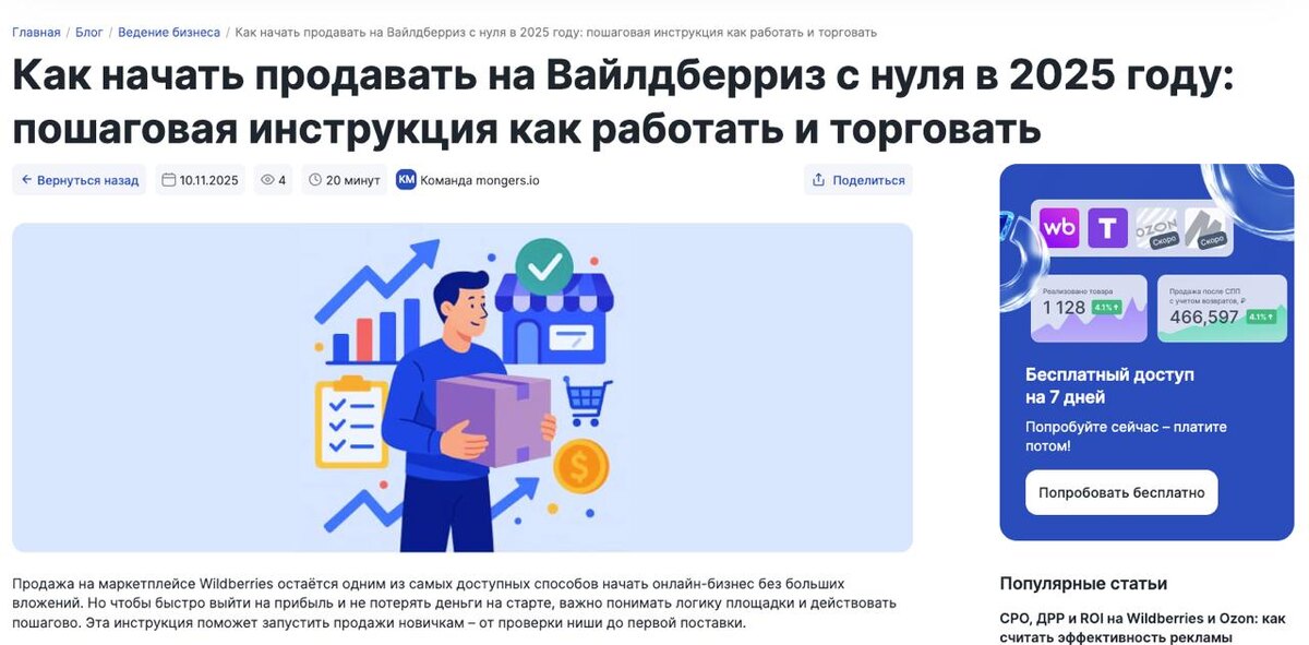 Выпустили новую статью «Как начать продавать на Вайлдберриз с нуля в 2025 году: пошаговая инструкция как работать и торговать