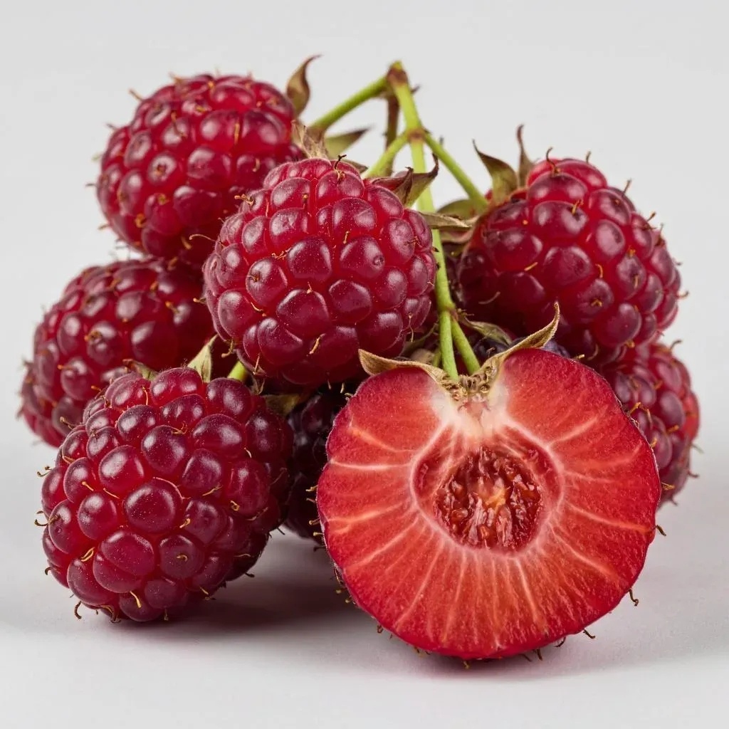Что такое логанберри? Логанова ягода, известная также как логанберри, была выведена в конце XIX века американским садоводом Джеймсом Харви Логановым. Она представляет собой уникальный гибрид двух популярных ягодных культур: ежевики (Rubus fruticosus) и малинки (Rubus idaeus). Название "loganberry" произошло именно от фамилии своего создателя. Особенности логонаровки: Внешним видом логонаровка напоминает ежевичку: удлинённые ягоды тёмно-красного цвета. Однако вкус значительно отличается от родительских видов. Внутри ярко выражены характеристики малинового вкуса с лёгкой кислинкой и нежностью аромата. Цвет зрелых плодов варьируется от насыщенно-малинового до бордового оттенка. Тайбери — это похожий гибрид, созданный позже логонаровки путём скрещивания логонаровки и красной малины. Полученный сорт стал одним из популярнейших представителей гибридных сортов ягод. Отличительные черты тайбери: Размер плода примерно схож с крупными видами малины, однако форма необычная — слегка вытянутая, б