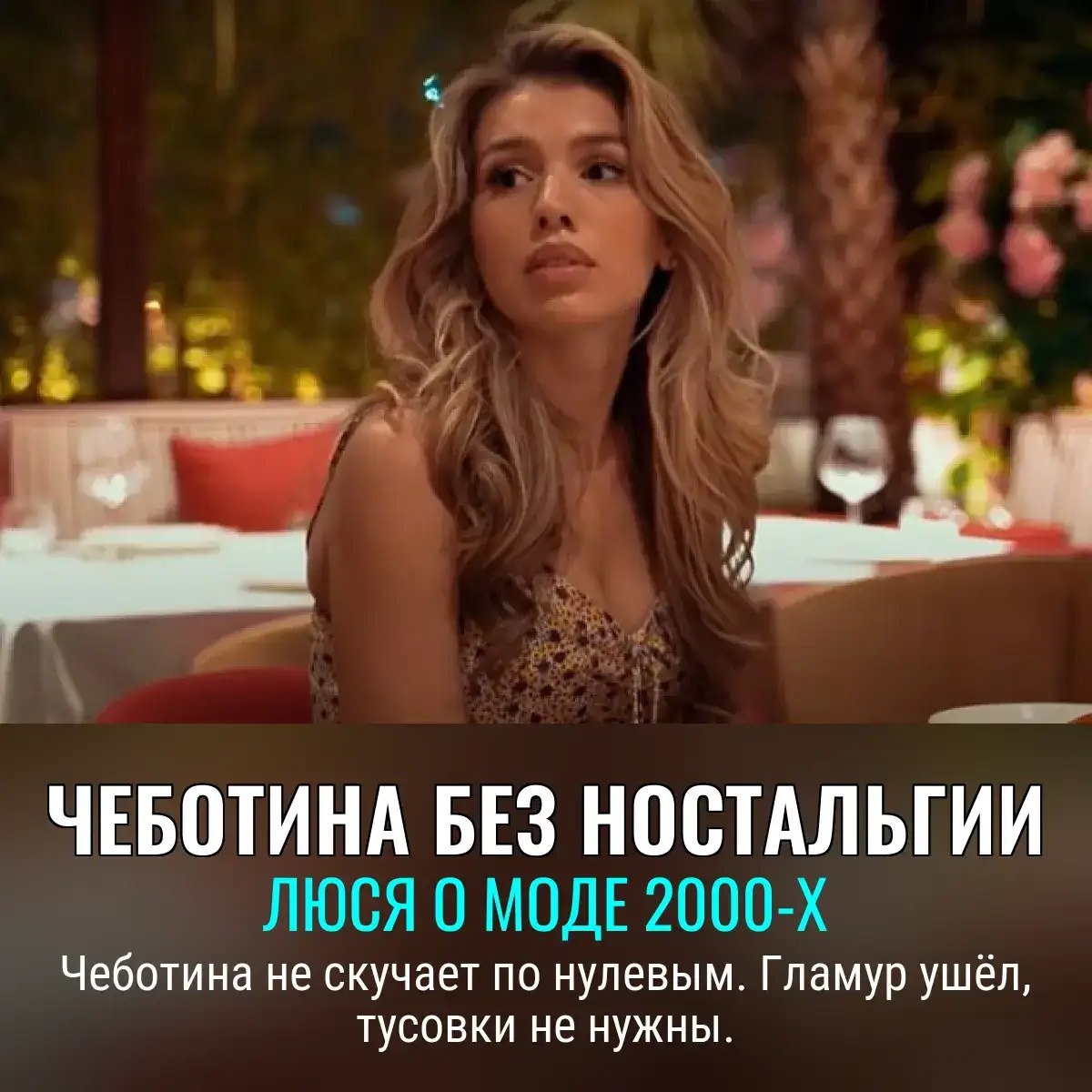 Люся Чеботина на удивление спокойно относится к моде на ностальгию по 2000-м. Пока одни предаются воспоминаниям о клубах, брендах и ночных вылазках, артистка предпочитает трезвую реальность. "В клубах теперь пусто, а гламур давно утёк вместе с лимузинами и бутсами на шпильках," — иронизирует Чеботина. Конечно, тренды возвращаются, и стиль нулевых (к великому ужасу дизайнеров) снова на сцене. Но певица в свои 28 лет считает важнее разбираться не с призраками гламура, а с происходящим прямо сейчас., Следите за новостями 📩