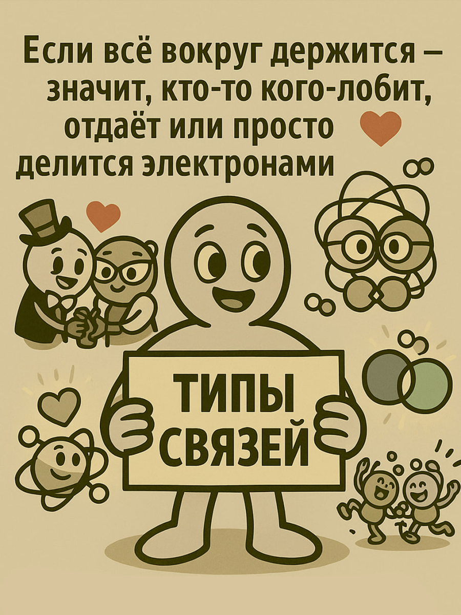 Металл натрий дарит свой электрон хлору, и вот уже привычные кристаллы соли склеены не романтикой, а электронами. Если ионная — это «ты отдаёшь — я беру», то ковалентная — «давай пополам».