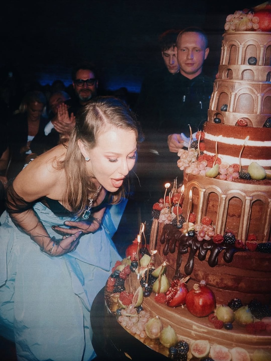 Ксения Собчак отпраздновала день рождения — 5 ноября ей исполнилось 44 года. Звезда говорила, что в их семье есть традиция — она и муж устраивают друг другу сюрпризы на различные праздники. В честь дня рождения жены Константин Богомолов поставил спектакль с участием Александры Ребенок и Игоря Верника, а также организовал вечеринку, на которой собрал близких и друзей телеведущей. Среди них были Филипп Киркоров, Татьяна Навка, Полина Гагарина, Елизавета Базыкина, Глюкоза и многие другие. Для гостей в этот вечер выступали Лолита и группа IOWА. В личном блоге Собчак показала кадры, снятые на ее личном празднике. Звезда надела полупрозрачный топ с глубоким декольте, длинную многоярусную юбку нежно-голубого цвета, декорированную большим бантом, а также серый пиджак с объемными рукавами и белым воротником. Свой образ Собчак дополнила полупрозрачными перчатками, цепочкой с подвеской в виде большого изумруда, серьгами и кольцами. Она распустила волосы, уложив с одной стороны прядь в стиле «гол