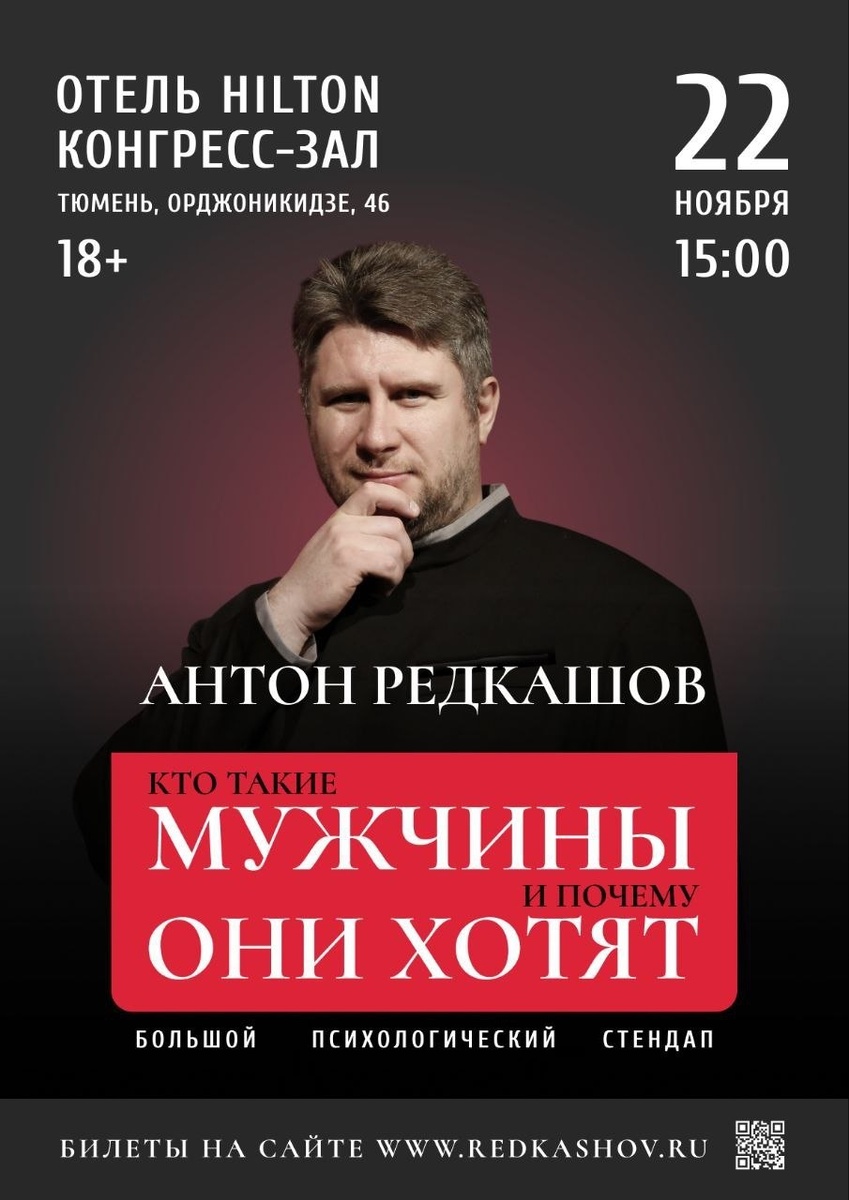 Кто такие мужчины и почему они хотят 18+ Редкашов — сексолог, клинический психолог, хекс-коуч, медиатор, преподаватель. Большой психологический хекс-стендап — отличный формат общения, в дружной, юмористической обстановке вы сможете задать вопрос (как в письменной форме, так и через живой микрофон), по вопросам семейных отношений, работе, общению с близкими и многом другом. Хекс-стендап — это не нудные и заумные речи, это легкое общение на сложные темы. Автор поделится большим опытом семейной жизни, рабочих отношений, но самое важное расскажет, как хекс превратить в истинное искусство, а не в тривиальное исполнение желаний. Сильный пол обязательно узнает себя и раскроет новые горизонты, а прекрасная половина человечества лучше поймет кто такие мужчины и почему они хотят. Для самых преданных поклонников и желающих узнать о себе больше, мы предлагаем посетить бизнес-ужин после мероприятия. В компании не более 20 человек вы сможете задать личный вопрос, получить ответы, с юмором провес
