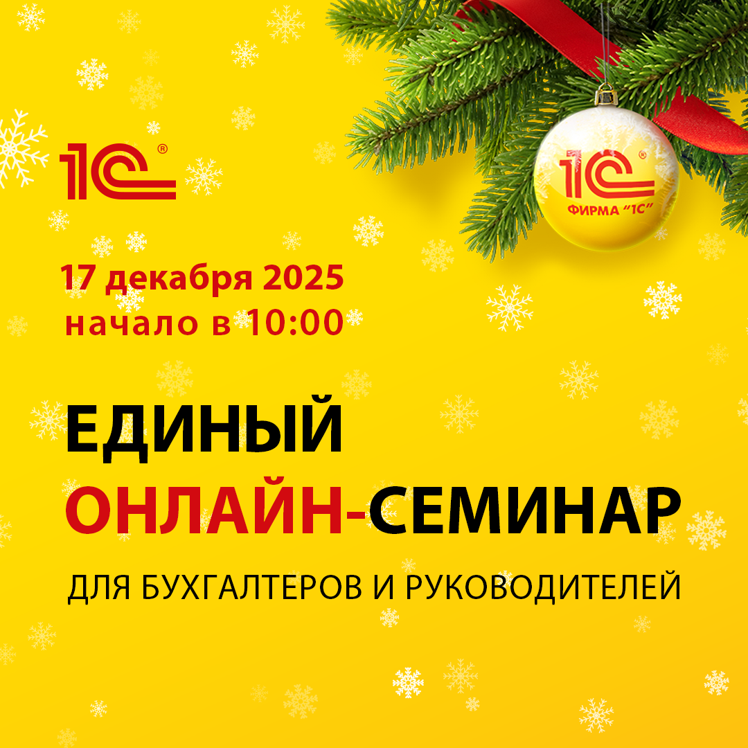 Вас ждут ключевые обновления законодательства, которые повлияют на ведение и организацию бизнеса в 2026 году. 17 декабря с 10:00 (по местному времени) — масштабное онлайн-мероприятие для профессионального сообщества от 1С. На семинаре вы узнаете: Эксперты ФНС и ведущие специалисты 1С разъяснят детали грядущих изменений и дадут практические рекомендации по ведению учета и оптимизации налоговой нагрузки. Бонус для слушателей — ответы на вопросы в прямом эфире и полезные раздаточные материалы. Участие бесплатное, требуется регистрация