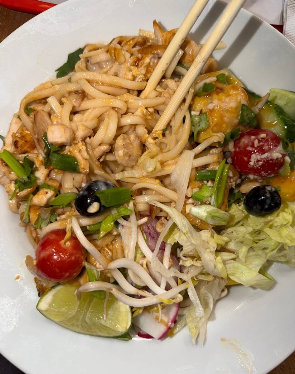 Пад-Тай с оливками и редиской вашему вниманию. Кто следит за мной давно, знают, что я скорее не напишу отзыв, если мне что-то не понравится (или оставлю его лично команде ресторана) и канал свой строю скорее на рекомендациях, чем на разносах. Но это такой кринж, что аж гениально! Не могу не поделиться. Пад-Тай в кафе Thai Kitchen в ТЦ Метрополис. Отвратительная помойка, иначе не сказать. Разваренная лапша, совсем не рисовая, ОЛИВКИ, какая-то капуста, РЕДИСКА. Чтооооо вообще происходит? Я думал меня сложно удивить, но тут вышло. Я думал такой жути никто уже в 25 году в Москве не способен приготовить. Даже мне стыдно стало, что такое продавать людям вообще умудряются.