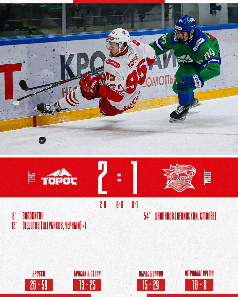 В ответ на пост ХК «Ростов» проиграл «Торосу» на выездном матче со счетом 2:1 🏒