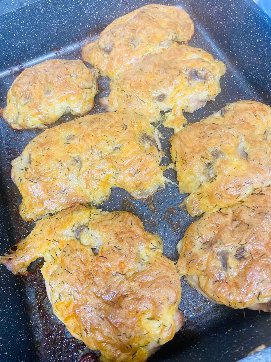 Всем привет!👋 сегодня хочу с вами поделиться рецептом вкуснейшего ужина. Курица под сырной шапочкой. Получается очень нежно и сочно. Куриную грудку режем , отбиваем. Выкладываем на противень, смазанный растительным маслом , солим, перчим. Готовим сырную шапочку: смешиваем яйцо, сыр, майонез , укроп, соль, перец крахмал, и любимые специи. Хорошо перемешиваем . Крахмал добавляем , чтобы шапочка не потекла. На кусочки курицы выкладываем порезанные грибы(можно и без них) , далее покрываем курицу сырной шапочкой . Отправляем в духовку на 180 градусов на 20-25 минут. На гарнир можно подать все , что вам нравится. Приятного аппетита #Готовьте вкусно с душой 💕