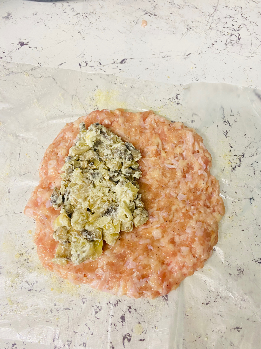Всем привет! 👋Готовлю свои заготовки заморозки на случай когда не хочется долго стоять у плиты. Предлагаю приготовить куриные зразы с начинкой из грибов. Для начала приготовим начинку: Грибы ( у меня шампиньоны) режем средними кусочками и обжариваем с луком на растительном масле. В конце добавляем пару ложек творожного сыра, соль, специи. Тушим еще пару минут. Остужаем. Далее готовим куриный фарш. Солим, перчим. На пищевую пленку выкладываем небольшое количество фарша. На одну половину выкладываем начинку и с помощью пленки сворачиваем фарш. Обсыпаем зразу панировочными сухарями со всех сторон. Отправляем в духовку на 180 градусов на 25 минут. Я готовлю в аэрогриле 180 градусов 20 минут. А остальные, замораживаю, вакуумирую. При необходимости достаю и отправляю в аэрогриль не размораживая . Наше вкуснейшее блюдо готово. Приятного аппетита! #Готовьте вкусно с душой💕