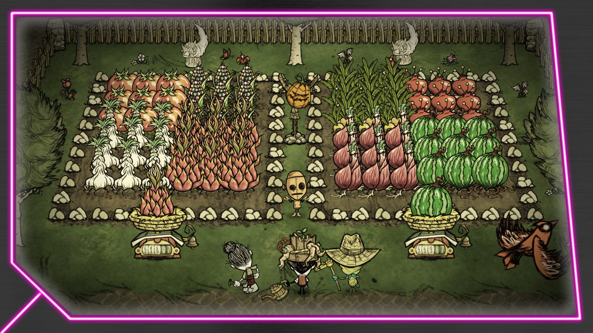 - Мега-Ферма Драконьего Плода (Dragonfruit): Это лучшая еда в игре по сочетанию сытости и здоровья (при приготовлении в котелке — Пир с Драконьим Плодом (Dragonpie)).