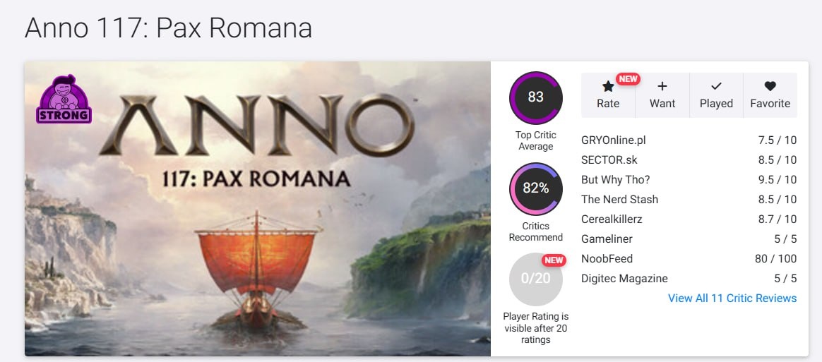 Первые оценки Anno 117: Pax Romana — 83 балла