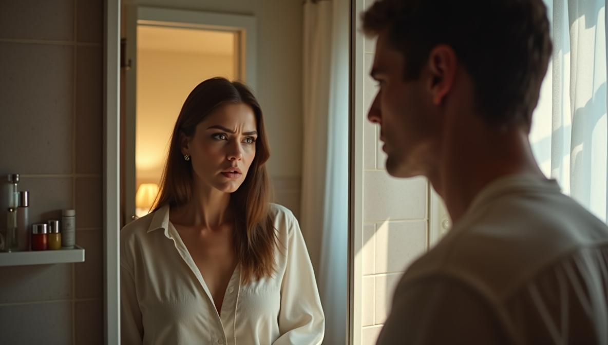 Екатерина медленно опустила расческу на полку, глядя в зеркало на отражение мужа, стоящего в дверном проеме ванной. Лицо ее заострилось, губы сжались в тонкую линию.