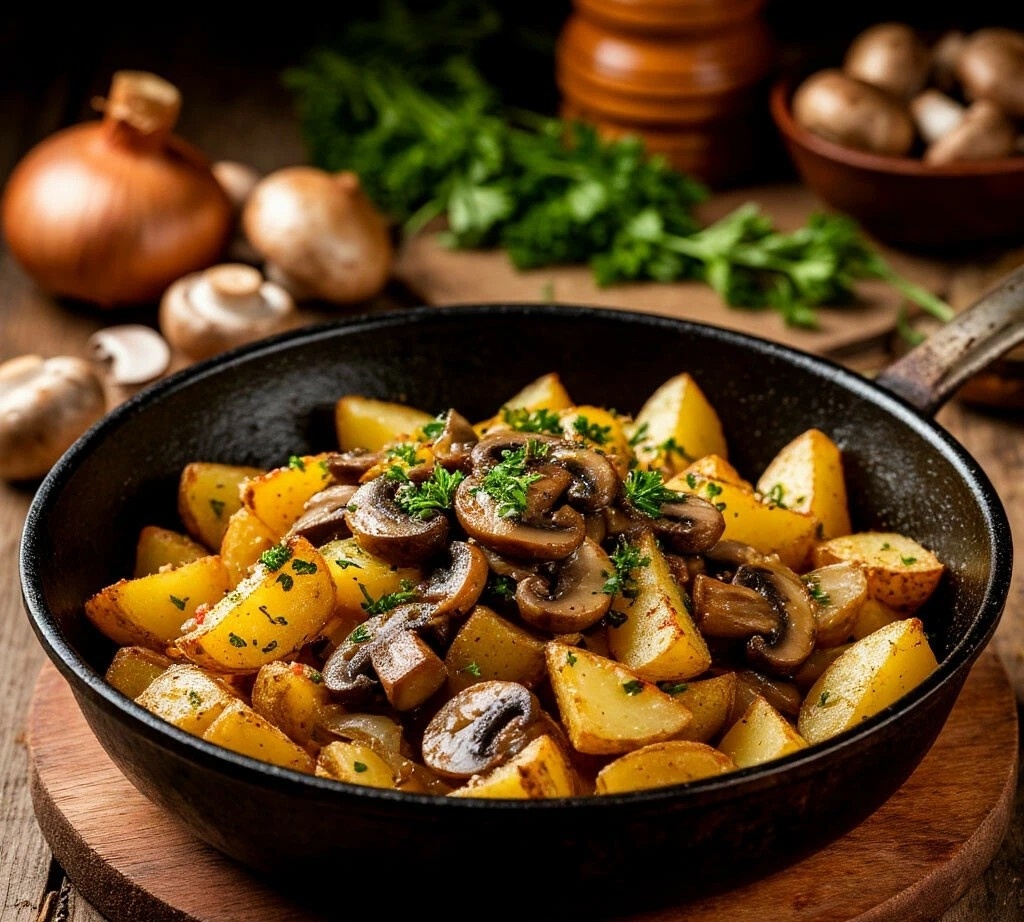 Спешу поделиться рецептом, который достался мне от бабушки, а ей — от её матери. Это не просто жареная картошка с грибами, а настоящий ритуал! Каждый раз, когда я её готовлю, соседи стучат в дверь с вопросом: "Что там так божественно пахнет?" Секрет не в ингредиентах, а в том, как мы с ними обращаемся. Что нужно (всё гениальное — просто): · Картофель — 6-7 средних штук · Шампиньоны свежие — 400 г (можно заменить лесными грибами) · Лук репчатый — 2 крупные головки · Чеснок — 3 зубчика · Укроп свежий — большой пучок · Масло растительное — для жарки · Специи: соль, перец черный молотый, паприка сладкая Бабушкин секрет: Картошку нужно не просто жарить,а сначала обжарить на сильном огне, потом томить под крышкой. И ещё один секрет — добавляем грибы в определённый момент! Пошаговый рецепт (как в детстве): 1. Подготовка — это важно! Картошку чищу и режу крупными брусочками(не мелко!). Заливаю холодной водой на 10 минут — так уйдёт лишний крахмал. Грибы режу пластинками, лук — полуко