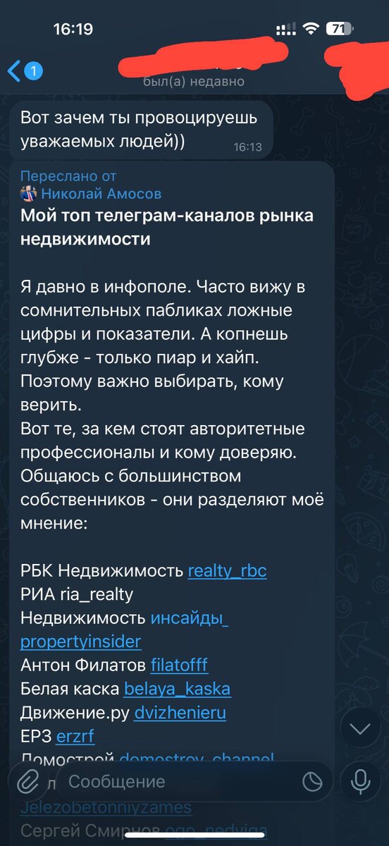 Провокатор это видимо я. Больше никто в телеграме никакой критики про ТОЧНО не писал, вообще никто. С одной стороны приятно что третий по объемам застройщик в России обращает на меня внимание, хоть и не считает меня достойным упоминания напрямую, с другой слова то обидные. Уважаемый Николай, иногда лучше трезво смотреть на вещи и говорить, а вам, как собственнику компании слушать неудобную правду. Я к ТОЧНО отношусь хорошо на самом деле. По сравнению с другими застройщиками объекты ТОЧНО неплохие, и каких-то сильно зашкварных историй или открытого обмана клиентов за вами не замечено. Я писал только о вашей фактической ситуации с нераспроданностью и тех решениях, которые к этому привели. У меня ТГ канал на два с половиной человека, да, это в основном профессиональное сообщество, но все же очень небольшое. Хайпить или пиариться тут не перед кем и незачем. Тем более, канал не анонимный, разбить мне лицо у подъезда может любой застройщик и цели как-то очернять кого-то нет. Ко мне было у