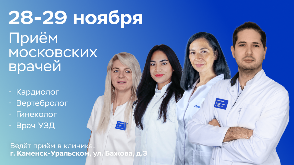 Только 28 и 29 ноября у жителей Каменска-Уральского есть возможность получить консультацию специалистов высокого уровня из московских клиник «Будь Здоров». Это удобно, быстро и без поездки в столицу. Количество мест ограничено. Кто принимает? Маклакова Татьяна Борисовна — врач-кардиолог, терапевт, специалист функциональной диагностики. Ведёт пациентов с ИБС, аритмиями, ХСН, резистентной гипертензией, наследственной гиперхолестеринемией. Работает со сложными сочетаниями хронических заболеваний и выстраивает стратегию лечения под образ жизни пациента. Тойкеева Лиана Генджебековна — акушер-гинеколог, онколог, врач УЗД. Занимается профилактикой и лечением гинекологических заболеваний, подготовкой к беременности, МГТ, кольпоскопией. Доктор высококлассно владеет УЗИ органов малого таза и мультипараметрическим УЗИ молочных желёз. Ведёт пациенток как маммолог-онколог, включая наблюдение после операций. Шайдуров Кирилл Александрович — нейрохирург, вертебролог. Хроническая боль в спине и шее, гр