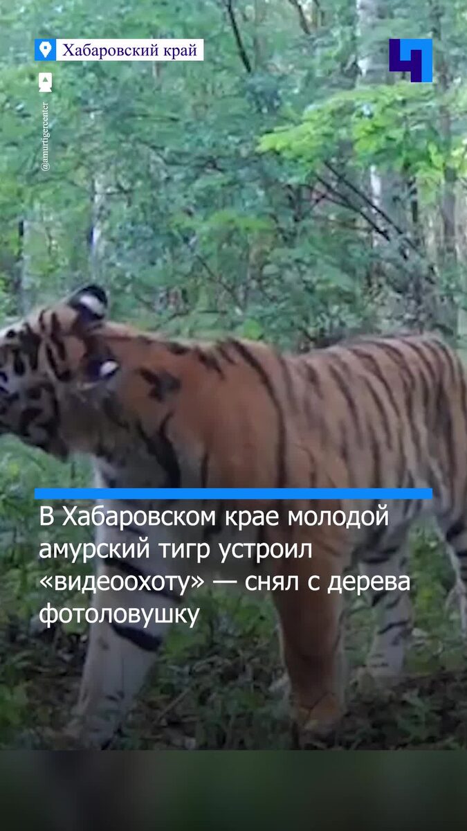 В Хабаровском крае юный амурский тигр проявил неожиданное любопытство — снял с дерева фотоловушку. Инцидент произошел на реке Дурмин, в районе имени Лазо. Хищник тщательно обнюхал устройство, покрутил его лапами, но кусать не стал. После короткого «осмотра» тигр потерял интерес и ушел. Специалисты узнали героя ролика — это сын знаменитой тигрицы Желтобокой. Молодой тигр уже живет самостоятельно и активно исследует окружающий мир. Фотомониторинг хищников на Дурмине ведется при поддержке Центра "Амурский тигр". Амурский тигр — самый крупный дикий кот на планете, вес самцов достигает 250 кг. Это единственный подвид тигра, приспособившийся к жизни в снежных лесах. Каждый тигр имеет уникальный узор полос — как человеческие отпечатки пальцев. В дикой природе их осталось около 750 особей, большинство живет в Приморье и на юге Хабаровского края. Благодаря охране численность тигров за последние десятилетия выросла почти вдвое.