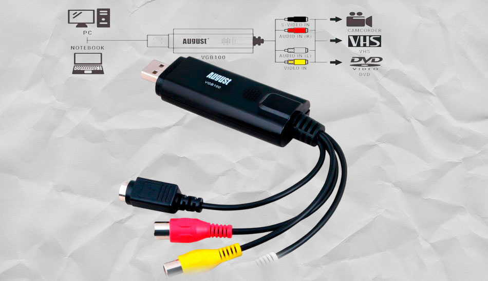 Аналоговый USB видеозахват с поддержкой RCA/S-Video с видеокамеры на компьютер.