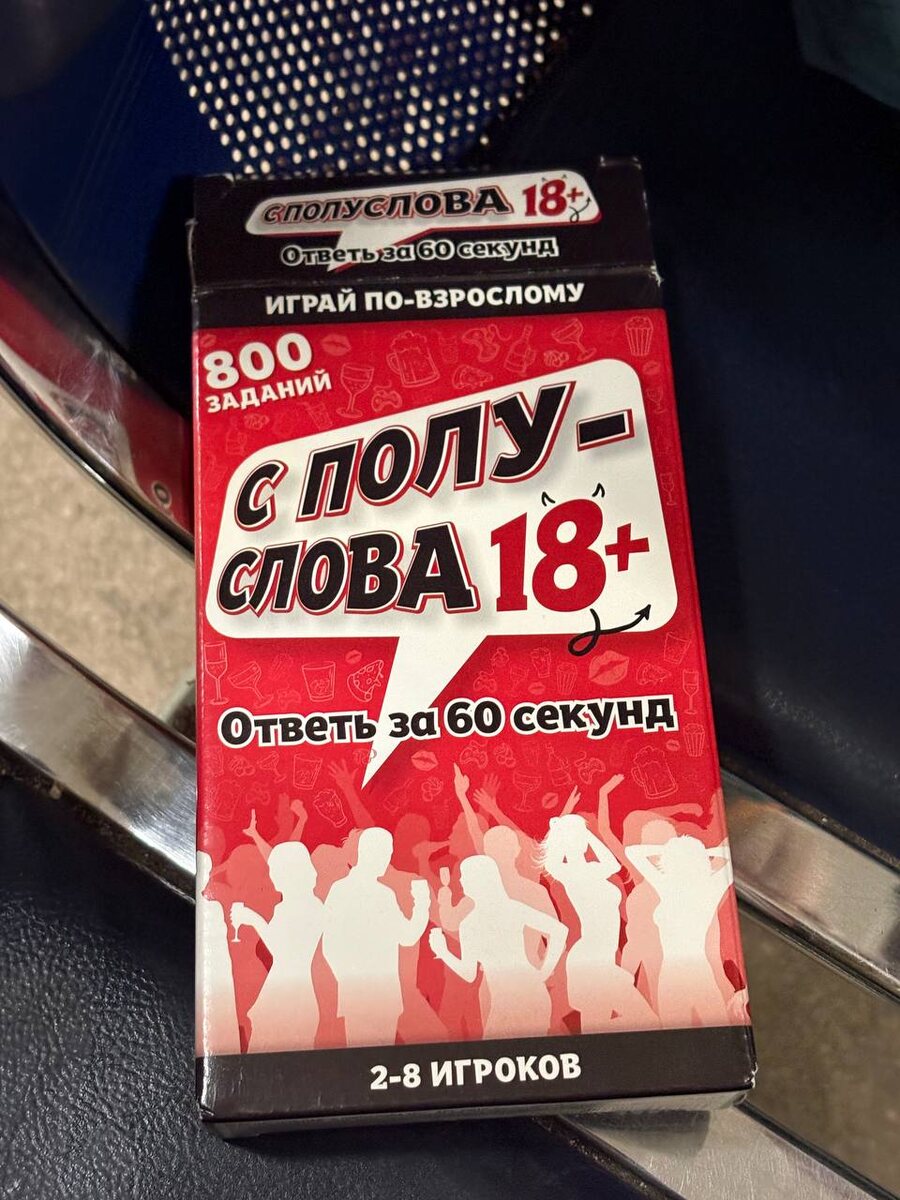 Мы снова в дороге 😉 Не совсем поняли, почему игра 18+ (несколько слов только «взрослых») Очень помогает в дороге. Время пролетает быстрее Самый прикол, когда люди рядом сидят и начинают участвовать 😂😂😂 ну и их взгляд, когда объяснение слова идет через призму личного 😉 и когда ты не в теме, понять как от слова дынюшка человек за секунду угадал слово грудь 😀 ну очень тяжело