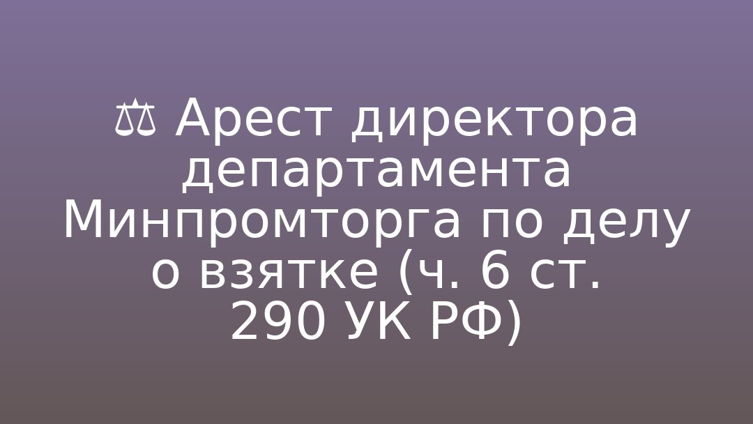 Басманный суд Москвы арестовал на два месяца директора департамента Минпромторга Михаила Кузнецова по подозрению в получении взятки в особо крупном размере. Санкция ч. 6 ст. 290 УК РФ предусматривает до 15 лет лишения свободы и крупный штраф.