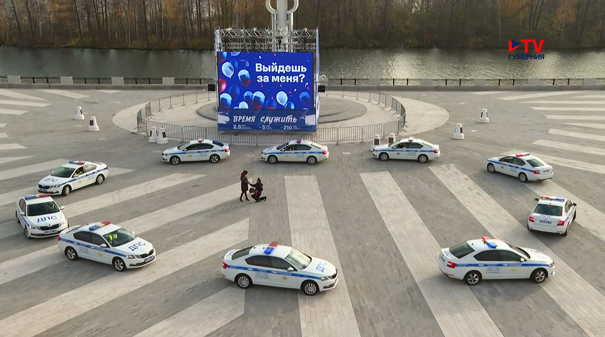 Десятки машин ГАИ съехались в центр, чтобы ветеран сделал предложение любимой в день полиции