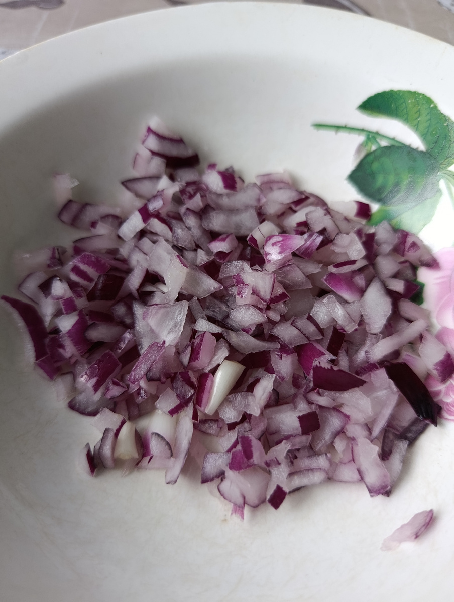 Хотя большинство советует ошпаривать лук или замачивать водой с уксусом, мне больше нравится способ Ирины Анатольевны. Тем более красный лук горчить не должен.