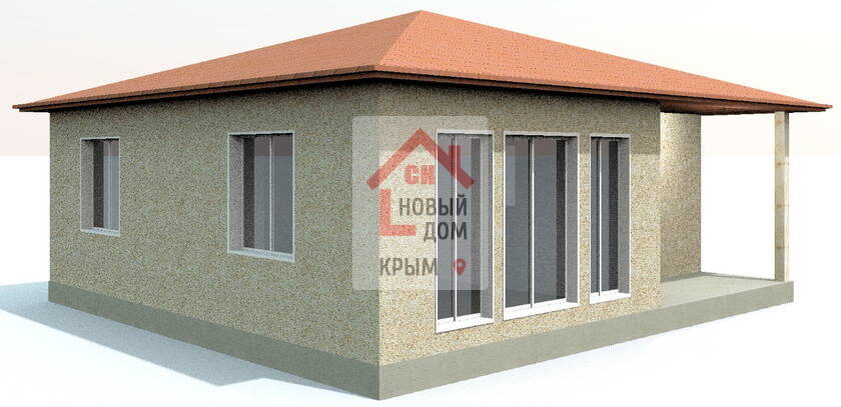 Индивидуальный проект строительства одноэтажного дома площадью 60 кв.м - решение для загородного отдыха или проживания у моря. В планировке предусмотрены спальня, просторная кухня-гостиная и терраса. Сметный расчет стоимости комплектации "теплый контур" - с фасадом, окнами и входной дверью. Фундамент мелкозаглубленный ленточный. Кровля металлочерепица четырехскатная. Фасад сайдинг. Каждую неделю новые проекты - Подписаться на канал Смета на странице проекта - https://nd-dsk.ru/kerch/nd-7170/