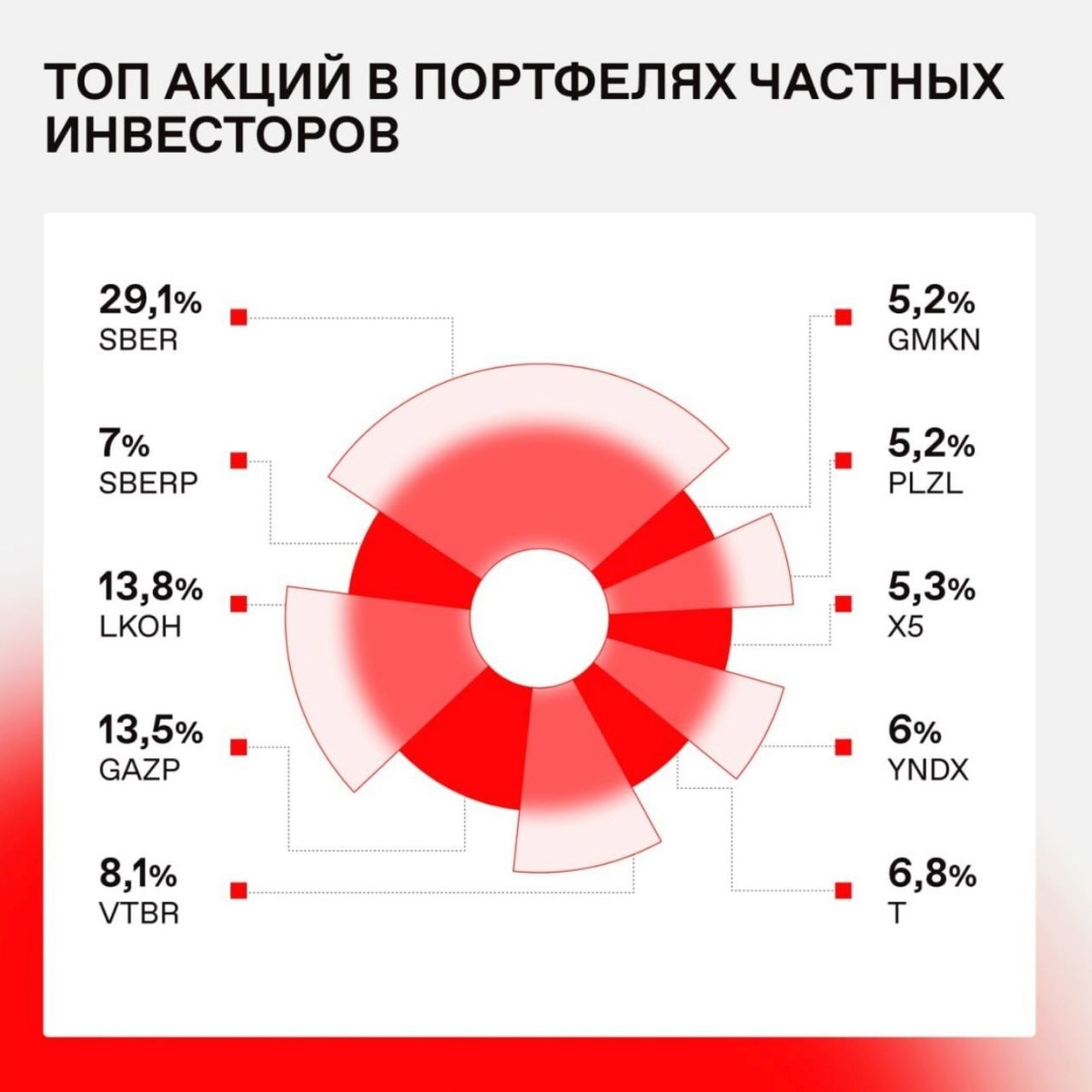 Народный портфель Октябрь 2025г Физические лица становятся опытнее. Если в октябре продали Лукойл (учитывая санкции СЩА), то молодцы ! Если еще немного электроэнергетики (Ленэнерго пр., например) добавить вместо Газпрома и частично вместо Х5 добавить Ленту, то можно будет сказать, что в народном портфеле — лидеры, компании с растущими трендами. Газпром, ВТБ - спорные, спекулятивные бумаги