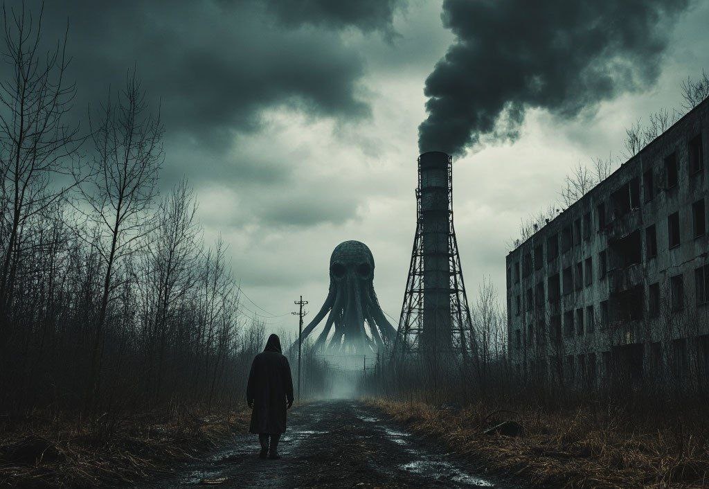 Осенью 2024‑го группа исследователей — биолог Анна, радиофизик Игорь, оператор Макс и проводник Сергей — отправилась в 30‑километровую зону отчуждения. Их цель: изучить аномальные биологические образцы у берегов Припяти. Официально — научная экспедиция. Неофициально — поиск «чёрного мха»: субстанции, которая, по слухам, светится в темноте и меняет структуру живых тканей. На второй день пути, минуя заброшенную деревню Копачи, они заметили первые странности. В зарослях ивняка шевелилось нечто бесформенное — словно сгусток тумана с прожилками зелёного света. Макс навёл камеру: на экране объект обрёл очертания — десятки тонких щупалец, срастающихся в единый комок. — Это не плесень, — прошептала Анна. — Оно движется. К вечеру группа добралась до старой насосной станции у реки. Внутри пахло озоном и разлагающейся органикой. На стенах — следы слизи, похожей на застывший нефрит. Игорь включил дозиметр: показатели зашкаливали, но прибор вдруг захрипел и погас. — Радиация тут не главная проблема