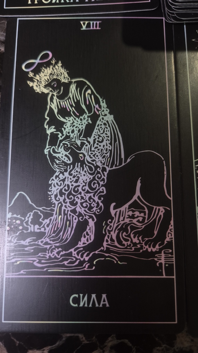 Это один из самых тяжелых ударов, которые может получить женщина. Мне так жаль, что ты через это проходишь. Вот карты таро, которые отражают эту энергию: 💔 1. Тройка Мечей — Сердце боли Это прямое воплощение того, что случилось. Острые мечи, пронзающие сердце. Карта внезапного удара, предательства, душевной боли, когда мир рушится в одночасье. Твой мир рухнул. Всё, что казалось надежным и настоящим, вдруг оказалось хрупким, как стекло. Сейчас, прямо в эту секунду, твой мир рухнул. Всё, что казалось надежным и настоящим, вдруг оказалось хрупким, как стекло. И эта боль, это ощущение предательства, эта пустота внутри... Они оглушают. Прежде всего — дыши. Просто дыши.Вдох-выдох. Не думай ни о чем, кроме этого. Поставь руку на грудь и почувствуй, как ты дышишь. Ты здесь. Ты жива. Я с тобой. 2. Сила (VIII Аркан) — Право на чувства Это карта, дающая разрешение чувствовать всё. Ее суть — не в подавлении эмоций (ярости, боли, горя), а в мягком принятии их, в укрощении «внутреннего льв