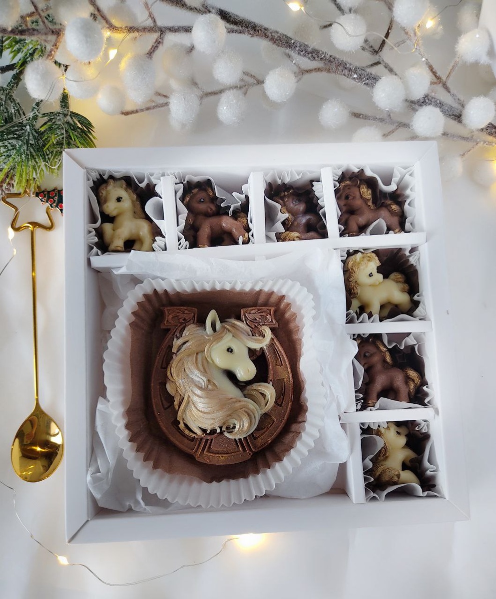 А вы знаете, что следующий год — год Лошади? 🐎 Я до сих пор в раздумьях — он Огненный или всё-таки Древесный? Если вы в теме — подскажите!) А пока делюсь новыми героями моего новогоднего ассортимента — шоколадная лошадка на подкове (символ удачи!) и забавная маленькая пони. Пусть ваш год будет таким же сладким и красивым, как эти лошадки! 🎄