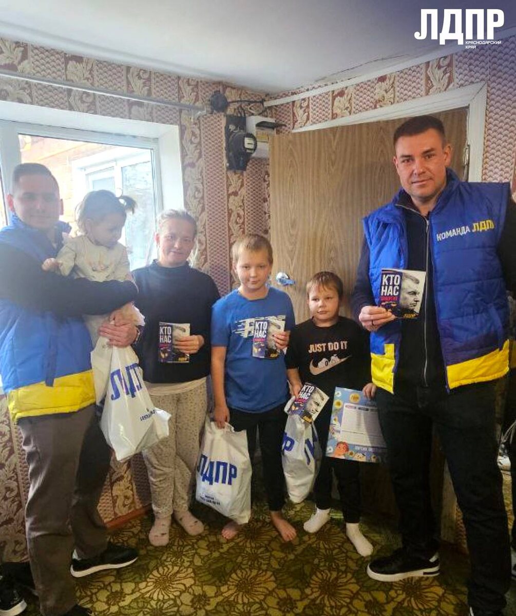 Сегодня в Кореновском районе прошла встреча депутата и координатора м.о. с многодетными родителями и их детьми. Ребята оказались очень умными и любознательными, им нравится учиться и расти в дружной семье. В ходе мероприятия ребятишкам были вручены атрибутика ЛДПР и памятные подарки. 🔹 Мы знакомим население с инициативами партии, а также раздаём брошюру «Кто нас защитит?». Выслушиваем мнения жителей, их жалобы и предложения. Важно помнить, что вместе мы можем решить любые вопросы! Спасибо всем за активное участие и доверие. Вместе - к успеху и победам! ✊🏻