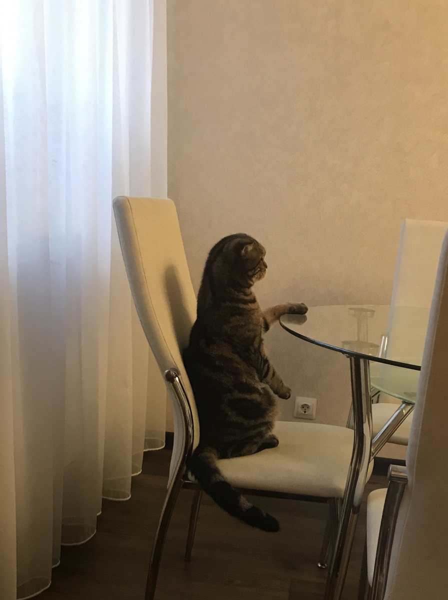 С самого утра кот стал руководить нашим днём, показывая, что и как нужно делать. 😂 Безусловно, утро следует начинать с вкусного и питательного завтрака. (Хотя сам питомец и ночью не прочь отведать своего хрустящего лакомства...☺️) В ожидании кушанья за столом нужно сидеть с ровной, как натянутая струна, спиной. Никаких локтей на столе, только кисть и часть предплечья. Всё исключительно и строго по этикету. 🤣 После завтрака можно и повязать. Конечно, за час - полтора много не нарукодельничаешь, но даже несколько рядов - это сильно лучше, чем совсем ничего - я в этом убеждена. 😉 Ещё чуть и можно будет отправляться в магазин за следущей партией пряжи. 🤗 Не дождавшись, пока хорошо распогодится и выглянет осеннее солнце, решено отправиться на прогулку. На улице заметно похолодало. Уже можно, и даже нужно, свитерок потеплее надевать, облачаться в шапку и перчатки. 😊 А ещё не будет лишним тёплый шарф, замотанный в несколько слоёв вокруг шеи, чтобы при желании можно было и на нос его