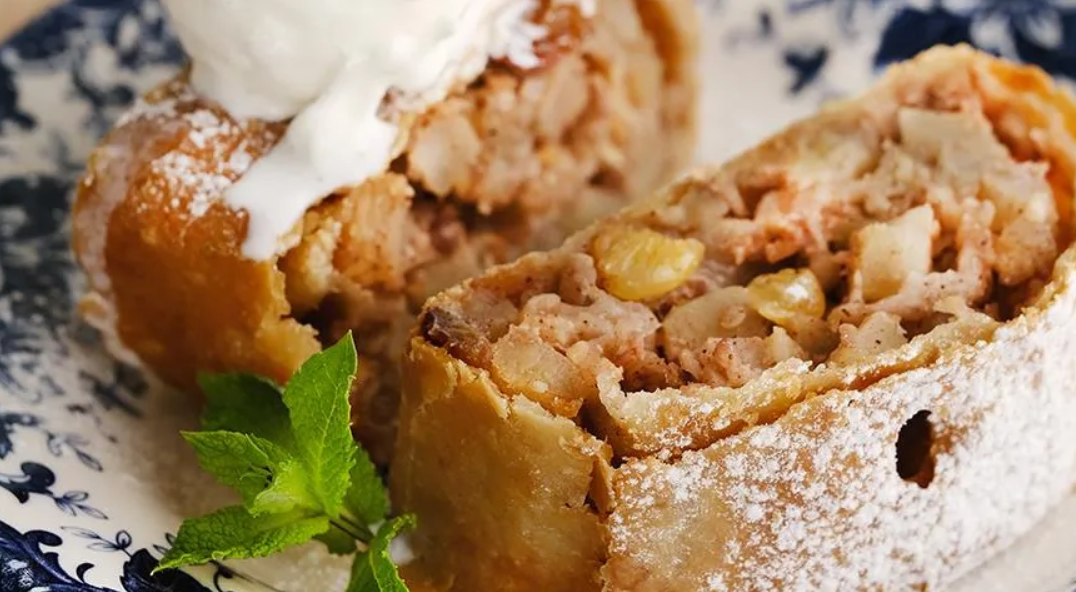 Истоки штруделя восходят к ближневосточной и османской кулинарной традиции. Считается, что его прародителем была пахлава — восточный десерт из теста, мёда и орехов. Первое документальное упоминание штруделя, а точнее рулета из тонкого теста с начинкой, датируется серединой XV века. А самый ранний известный рецепт — это молочно-кремовый штрудель 1696 года. Книга с ним вышла в конце XVII века, разумеется, в Австрии. В XVIII веке штрудель получил признание при дворе Габсбургов и венской знати. Вы точно удивитесь, но изначально его готовили с несладкими начинками, например, с тушёной капустой или шпинатом. Лишь к концу XIX века набирает популярность сладкий яблочный штрудель, чему способствовало широкое распространение яблок, сахара и корицы в регионе. Штрудель стал неотъемлемой частью кухни Австро-Венгерской империи и соседних стран, в том числе и России. Сегодня штрудель ассоциируется прежде всего с Веной, но его вариации встречаются от Северной Европы до Австралии, подтверждая поистине