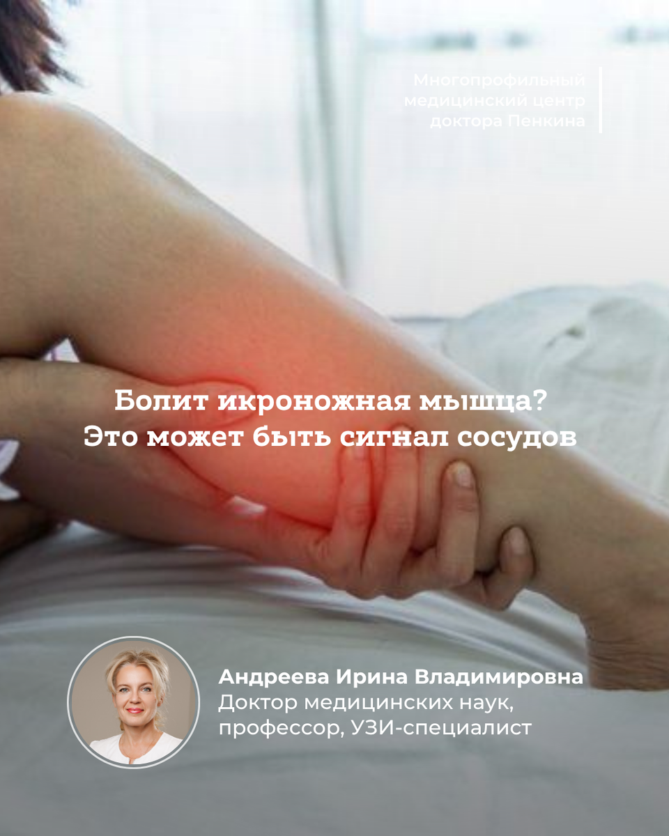 🤕Боли в икроножных мышцах — тревожный признак Они могут появляться при ходьбе, подъёме по лестнице. Такие боли носят ишемический характер, т.е. связаны с недостатком кровотока в артериях нижних конечностей, возникающим при физической нагрузке. Это заболевание называется облитерирующий атеросклероз артерий нижних конечностей. Он возникает при отложении холестериновых бляшек на внутренней оболочке артерий голени и бедра. Коварство этой болезни заключается в сходстве проявлений с болями при заболеваниях суставов, вен, а также при ущемлении нервов в пояснично-крестцовом отделе позвоночника и при многих других болезнях. ⚠️ Важно: при появлении болей в проекции голеней необходимо исключить патологию артерий и вен нижних конечностей. Рекомендуется выполнить УЗИ коленных суставов, и при необходимости — УЗИ других органов. Исключите риск хронических проблем своевременно! Запишитесь на консультацию к Андреевой Ирине Владимировне — доктору медицинских наук, профессору, УЗИ-специалисту. Доктор по