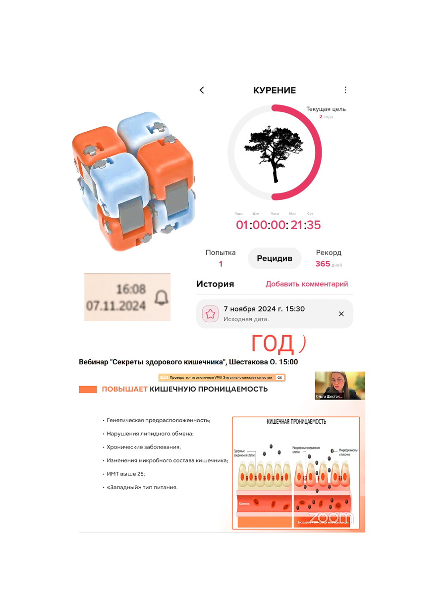 · Всё вышло случайно. ✨7 ноября 2024 года я смотрела вебинар "Секреты здорового кишечника". Там рассказывали, как токсины разрушают соединения клеток. Я вдруг так ярко представила, как никотин проделывает это с моими, что мне стало невероятно жалко свои же клеточки. И я просто... решила.