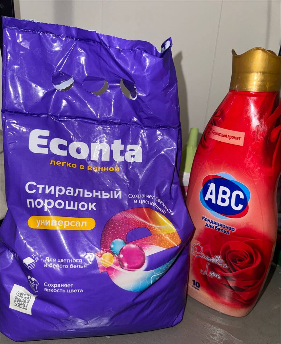 Купила на пробу вот такой порошок эконта 3 кг за 73₽ в пятерочке и АБС кондиционер 179 р