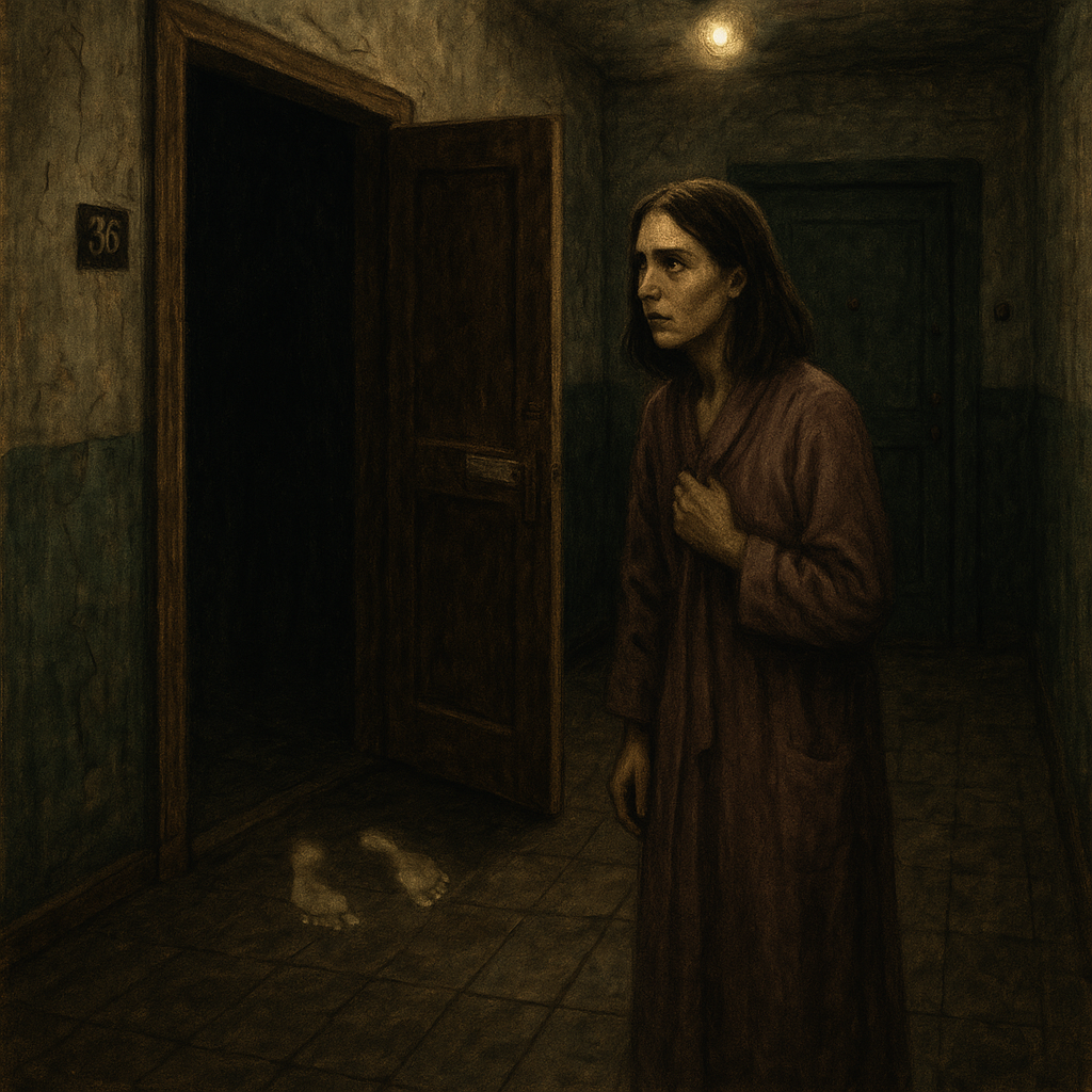 Пусто. Только лампа под потолком мигнула, как всегда, перед тем как окончательно погаснуть. Поднималась она медленно, чувствуя под подошвами липкую плитку. Когда проходила мимо третьего этажа, за дверью 36-й квартиры кто-то тихо постучал — изнутри. Три раза, размеренно.