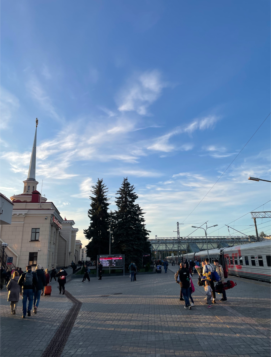 Утром мы приехали на ночном поезде из Санкт-Петербурга и, конечно же, нас встречал Петрозаводский вокзал, построенный в стиле неоклассицизма в 1955 году на месте первоначального деревянного здания, сильно пострадавшего в период войны.