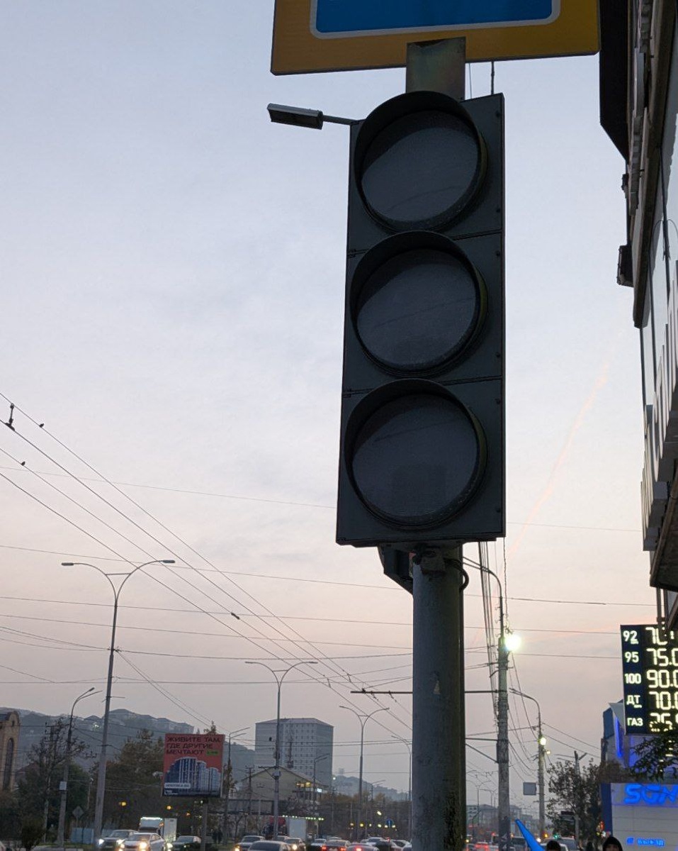 ©Здравствуйте! В Махачкале, на пр. Акушинского, где "Зуб", второй день, а то и больше, не работает светофор. Люди не могут переходить дорогу."