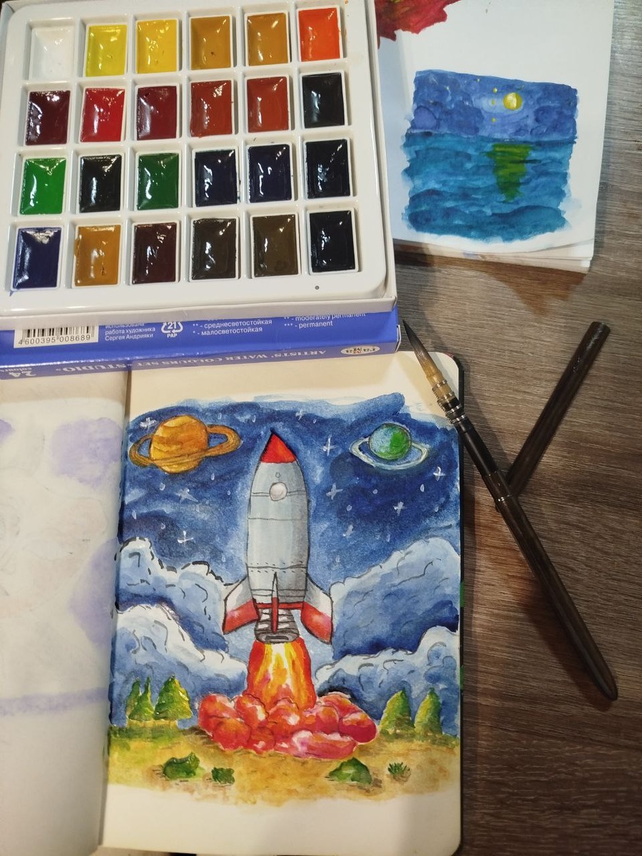 Купила себе художественную акварель и профессиональную кисть. Но когда руки не из того места растут даже профессиональное оборудование не спасёт. 😂 Но это же не повод отчаиваться, а повод учиться рисовать акварелью. Если раньше у меня была хоть какая-то практика в гуаши, акриле, карандашами и ручками, то акварель, можно сказать, для меня первый опыт. На сегодн с рисованием всë, пойду книжку почитаю.)